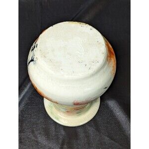 Add a touch of vintage charm to your home decor with this mid-century handmade vase. The abstract color splash pattern and hand-painted finish make it a unique piece of art. The glossy ceramic material does have some crazing as shown in images.
