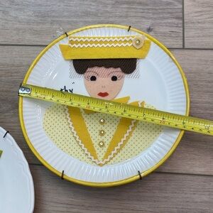 Absolutely amazing kitschy handmade decorative plate art. Each plate features a layered cloth and felt bust of a woman wearing a fancy hat. The first is named “Karen” and the Second “Kathy”. Funny and unique. In excellent condition
