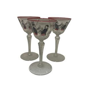 Mid Century Libbey Pickwick Merrymakers 1947 Set of 3 Stemmed Cordials Vintage