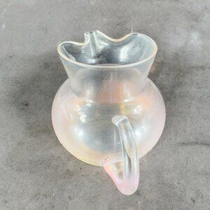 Mid Century Light Pink Glass Pitcher Carafe Miniature With Gold Flecks All Over