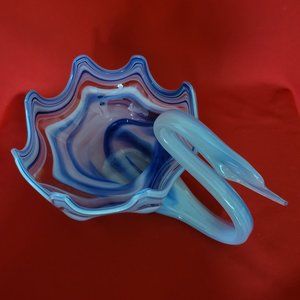 Mid Century Marble Swirl Swan Vase Large Bowl Planter Centerpiece
