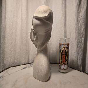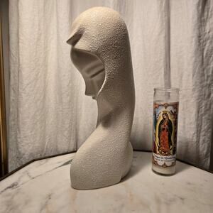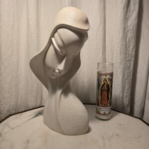 Mid Century Modern Abstract Ivory White Female Bust Signed Serena. Virgin Madonna sculpture.