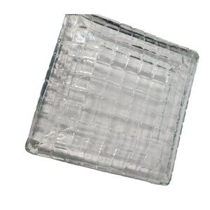 A Mid Century Modern Art Glass Tray, perfect for coffee table decor or as a catchall in bedrooms or bathrooms. Features a grid pattern with a light blue tinge, adding a touch of elegance to any setting.