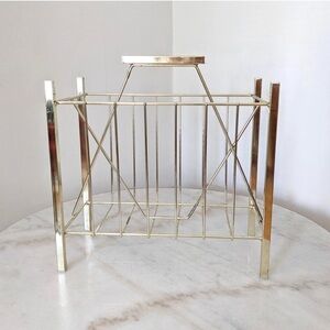 This is a great MCM Mid Century Modern Brass Magazine Rack. 18”W x 16”H x 9”D