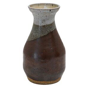 Mid Century Modern Clay Pottery Three Tone Minimalist Short Pitcher Vase