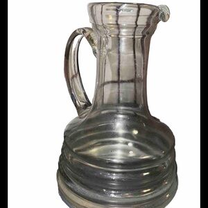 Mid Century Modern Clear Spiral Hand Blown Art Glass Water Pitcher 9”
