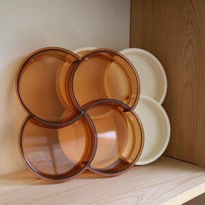 The options for usage and settings for this cream, melamine,1970s Mid Century Modern snack bowl or tray are endless, including for pool and cocktail parties, or in a home bar capacity. It was made in Denmark and designed by artist Gunnar Cyren for Dansk. It would pair fabulously with its amber-colored twin, which can be found in our listings. Feel free to bundle them for a deal! We are open to good offers.