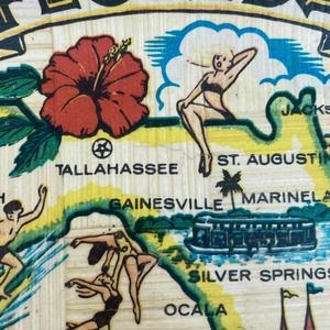 Mid Century Modern Florida bowl souvenir bamboo kitsch multicolor