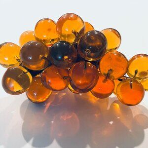super cute mid century modern folk art goldenamber round cluster of grape design beaded sculpture on wood. connects with wires, and in excellent condition. Overall 6" x 4" x 2.5" and very decorative on the table, kitchen or fruit platter display.