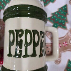 Mid Century Modern Ceramic Green and Off White Salt & Pepper Shakers 5.5" tall. Comes with stoppers that do not match.