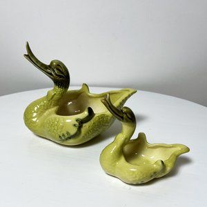 Vintage marked Hull Pottery mama and baby stylized swan dishes from the 1960's "Imperial" line.