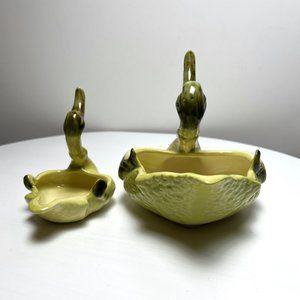 Mid Century Modern Hull Ceramic Chartreuse Green Imperial Swan Planter Bowls
