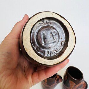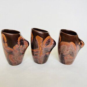 Mid Century Modern Laurentian Pottery Canadian handmade Coffee mug, Brown, 3 Set
