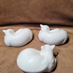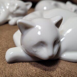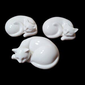 3 Mid Century Modern MCM Sleeping Cats White Vintage Porcelain 4 x 3 x 1.5 in