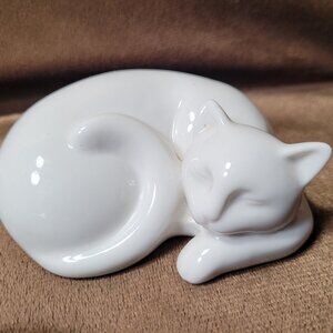 Mid Century Modern MCM Sleeping Cats White Vintage Porcelain 4 x 3 x 1.5 in