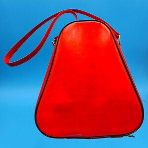 Step back into the elegance of Mid Century Modern style with this rare Siamese Cat handbag from Japan. Dating from the 1950s–1960s, this purse features a striking teardrop trapezoid shape in bold red and white vinyl, accented with a playful pair of long-neck Siamese cats. A true vintage treasure, perfect for collectors of retro fashion and feline-inspired design.
