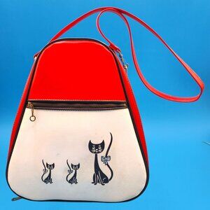 Mid Century Modern Siamese Cat Handbag 1950s 1960s Red White Japan Purse