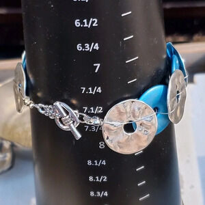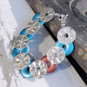 Mid Century Modern Style Handcrafted Silver Blue Cinnamon Disc Beads Bracelet