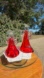 Clear glass at the top then an orange red to a bright cherry red at the bottom.