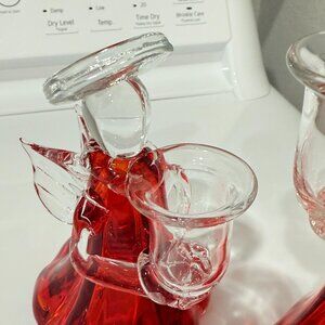 Mid Century Modern Thick Glass Angel Candle stick holders