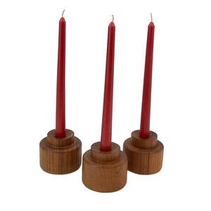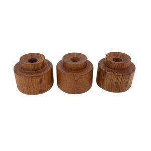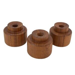 Mid Century Modern Vintage TEAK Wood Round Candle Holders Minimalist Set Of 3