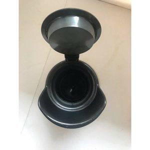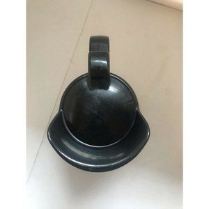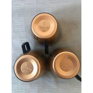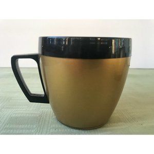 Mid Century Modern West Bend Thermo Serv Cup/ Mug & Carafe Set (gold/black). Items are preowned with no cracks or breaks and in good condition.
