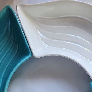 Wave patterned in vibrant glossy ocean blue and white. Great vintage condition