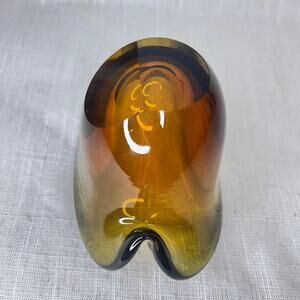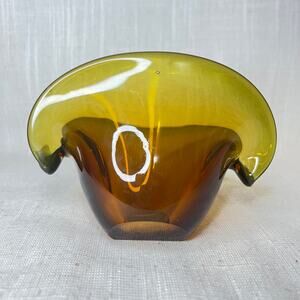 Mid Century Murano Style Yellow Ochre Art Glass Clam Shell Bowl Tilted Vase