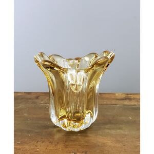 1960-70S stunning piece of Blown Art by Murano for the Teleflora company floral vase. In a beautiful topaz yellow color/(citrine) cased in clear glass, this piece reminds me of running a waterfall. The Piece has some weight to it. See all photos for details.