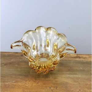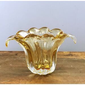 Mid Century Murano for Teleflora Art Glass Citrine Waterfall Floral Vase