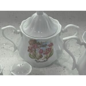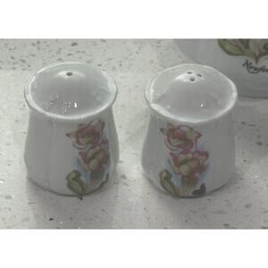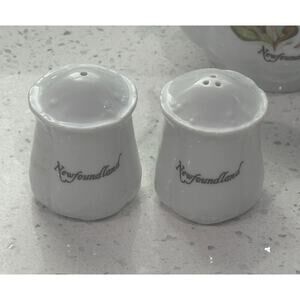 Mid Century Newfoundland Hand Painted Fine China Sugar Cream Salt Pepper Set