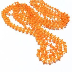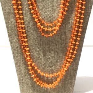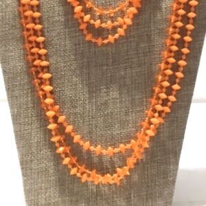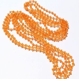 Mid Century Orange Fused Bead Multi Strand Long Necklace