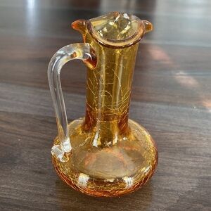 Mid Century PIlgrim Hand Blown Amber Crackle Glass Mini Pitcher