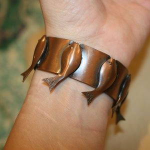 Mid Century Rebajes Copper Wide Fish Bracelet