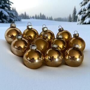 Mid Century Shiny Brite Mercury Glass Gold Ball Christmas Ornaments-Set of 11