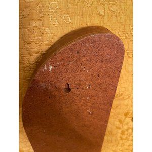This knife holder is natural wood and cork. There is a hole for hanging your set of knives in the back. The design of this holder is Mid Century Mod with clean and simplistic lines. It is in good condition for it’s age with slight mars to the finish which could be covered with furniture pens. The maker of this sleek holder is Vita Craft known for their expertise during the Mid Century period.