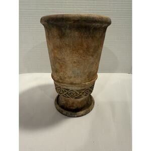 Mid Century Stoneware Pottery Flower Vase 8”, Rustic, Farmhouse, Celtic
