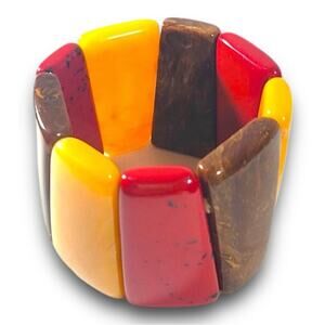 Mid Century Stretch Brown Mustard Gold Orange Bracelet 3” FALL COLORS LIKE NEW!