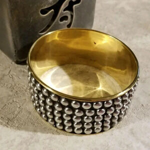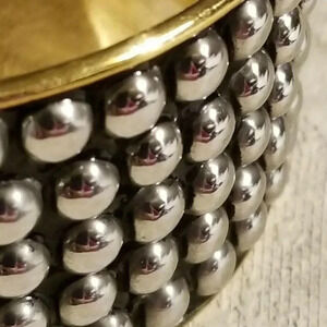 Mid Century Style India Brass Bangle Bracelet Silver Black Geometric Dot Accents
