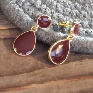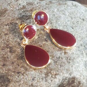 Mid Century Style Retro Burgundy Red Gold Earrings