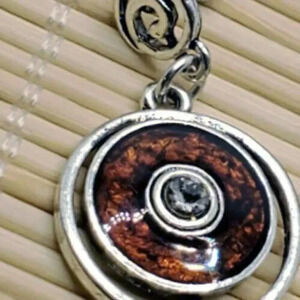 Chic dangle earrings have silver round drops accented with brown enamel and crystal rhinestones