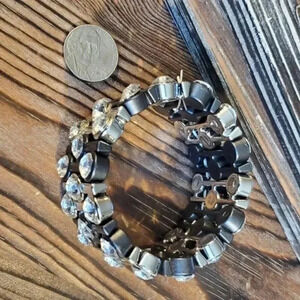 Mid Century Style Silver Gunmetal Stretch Bracelet