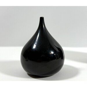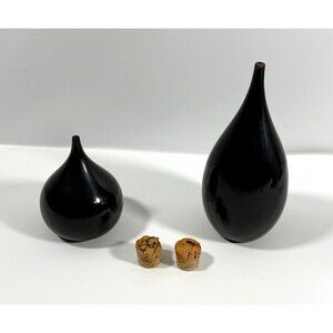 Mid Century Takahashi Black Lacquered Teardrop Salt & Pepper Shakers Japan FLAWS