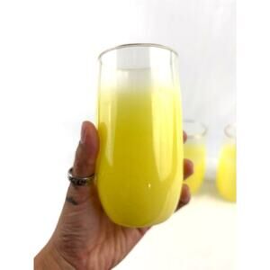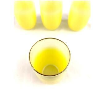 Mid Century Vintage Blendo Yellow Frosted Glass Cocktail Set of 4 Gold Rim 1950s