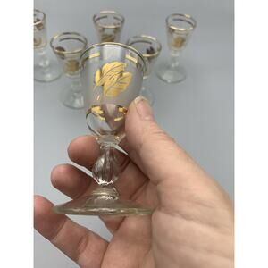 Mid Century Vintage Libbey Shot Glasses, Set Of Six, Frosted With Gold Leaf