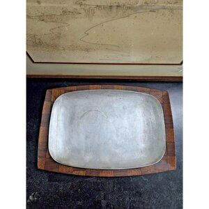 Mid Century Weavewood Serving Tray w/ Removable Aluminum Insert 1950s MCM Decor