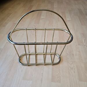 Pre-owned Enhance your home with this elegant gold magazine rack. Its sleek design adds a touch of luxury to any space.