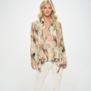 Layer up in style with this mid-cut print jacket, designed with an open front and draped silhouette for an effortlessly polished look. The neutral-toned print pairs beautifully with solid or coordinating tanks, offering a versatile option for work or weekend wear. Crafted with a touch of stretch, it moves with you for all-day comfort. A lightweight layer that adds refinement without the bulk.