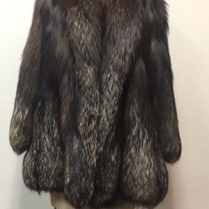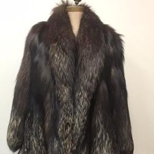 Very Fine Mid Length Dark Silver Fox Fur Wrap Style Vest-Coat; a very stylish coat that shows a silver dapple in a dark pelt. Very nice and interesting color. The condition is excellent. Worn a few times. Original it was with sleeves (pictures) but they were taken out as the coat look and seats better without sleeves. (IMHO) I have still removed sleeves, if you'd like to reattach them. Sleeves are (outseam) 26"