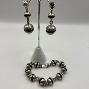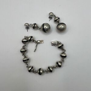 This sleek bracelet showcases a contemporary mid modern design with its 925 silver and onyx inlay, featuring a chain-like structure made of connected segments. Its minimalist style and subtle sheen make it a versatile accessory for any occasion. In like new, never used condition. Needs to be cleaned by buyer, some buyers prefer the vintage look.